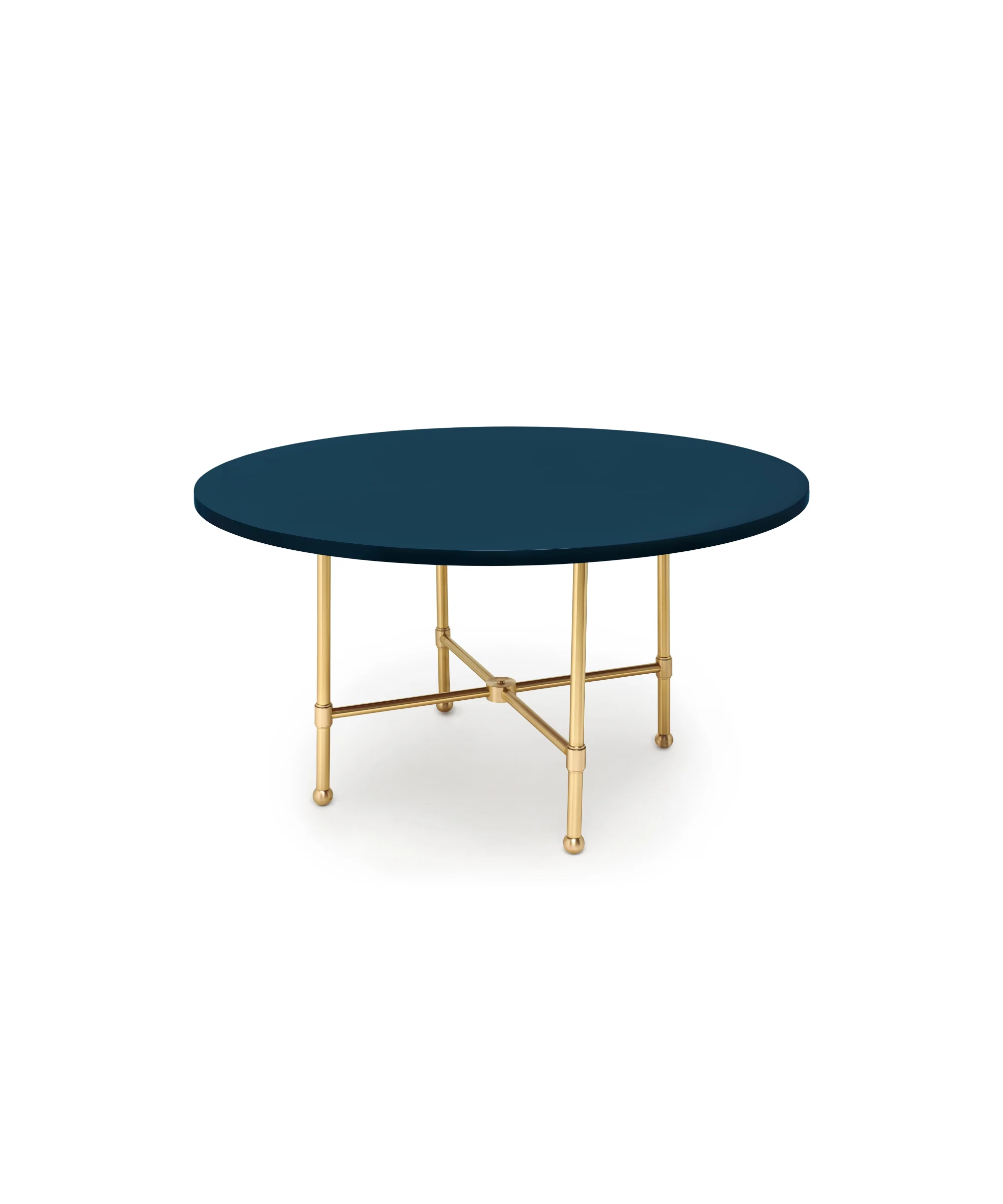 A lacquer dining table with unlacquered polished brass and glossy lacquer finish. Designed with Kate Rheinstein Brodsky, bringing her uniquely charismatic and colourful perspective to timeless designs. Handmade in Vietnam by master craftsmen using traditional Son Mai lacquer techniques.
